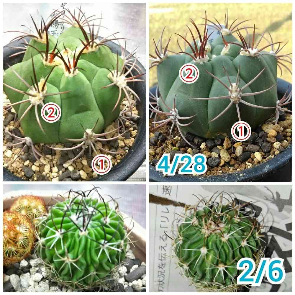 天賜玉、棘の位置比較してみたら、あれまぁ🤣我が家に来て4ヶ月、むくむく大きくなってますやん、、