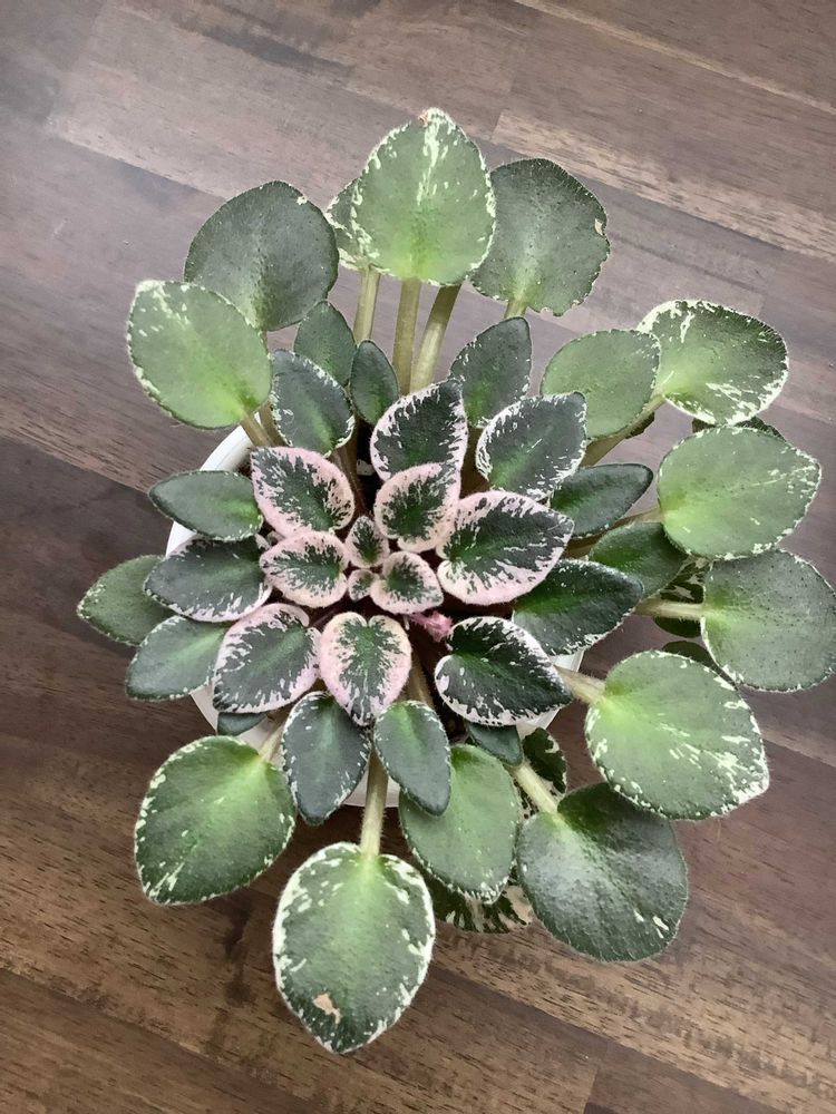 斑入りの葉がきれいなミニセントポーリア。もうすぐ咲きそうです。楽しみ。