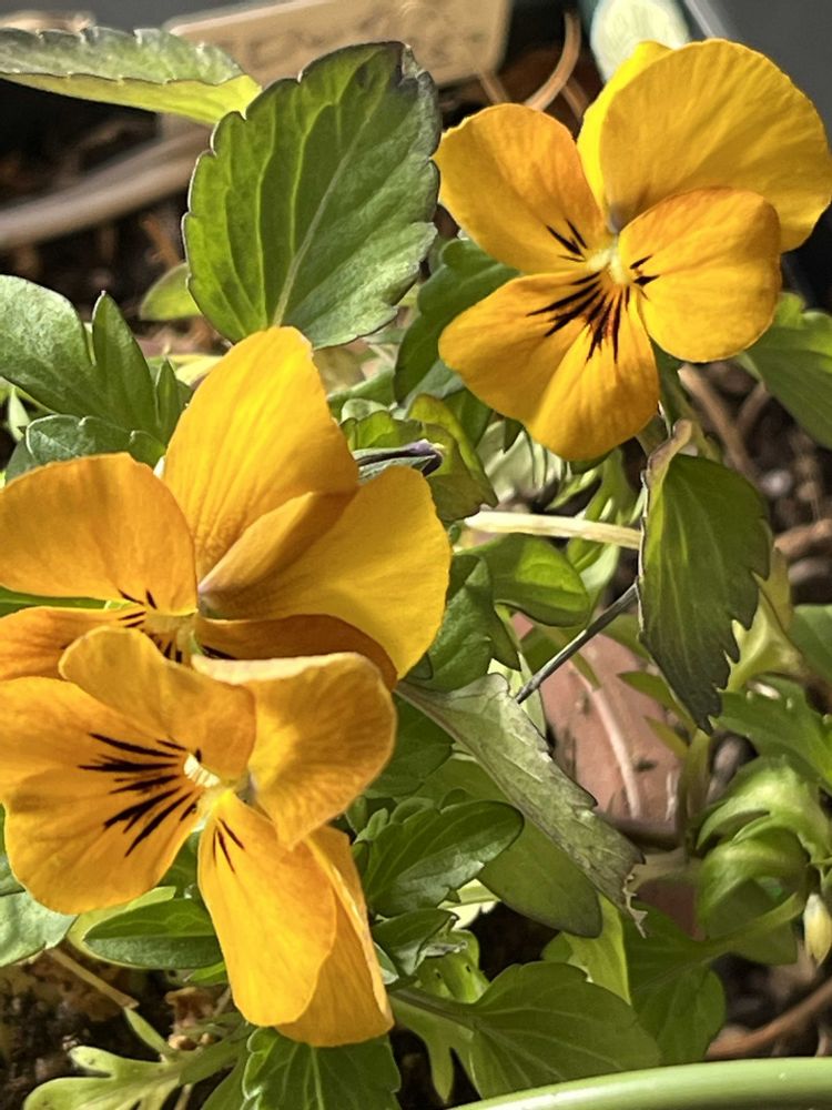 連休最終日のお花は、ビタミン💛カラーを🙌 風吹く寒いベランダで、健気に咲いています☀️ もうすぐ陽が落ちて、もっと寒くなるけれど、ビタミンカラーの色変わりパンジーさんはまけません🤗