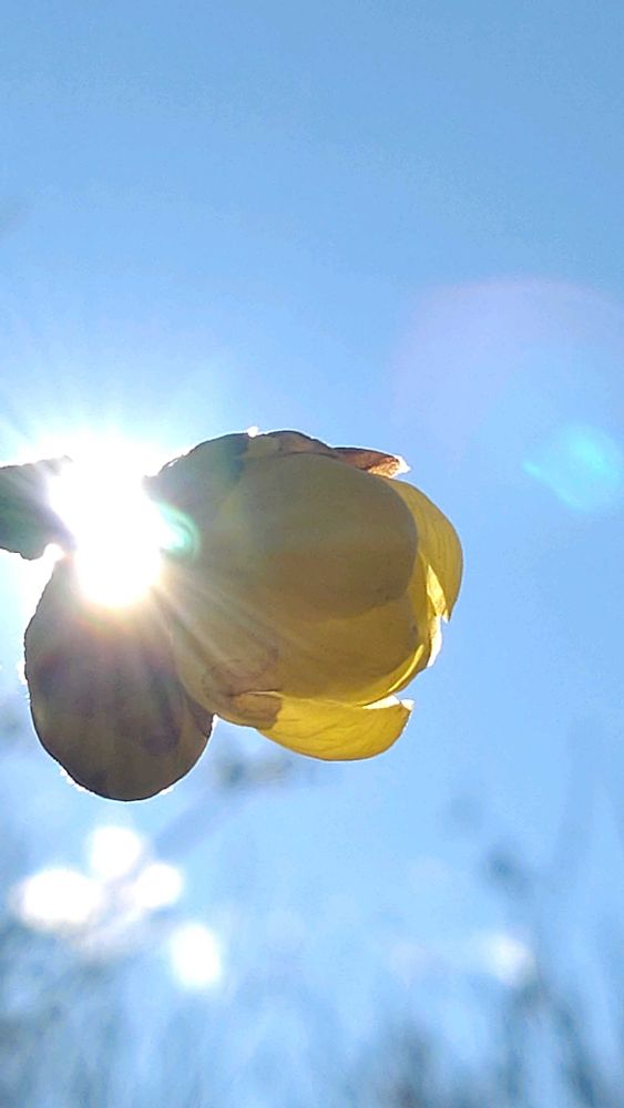 真っ青な空に、輝く黄色のつぼみ💕