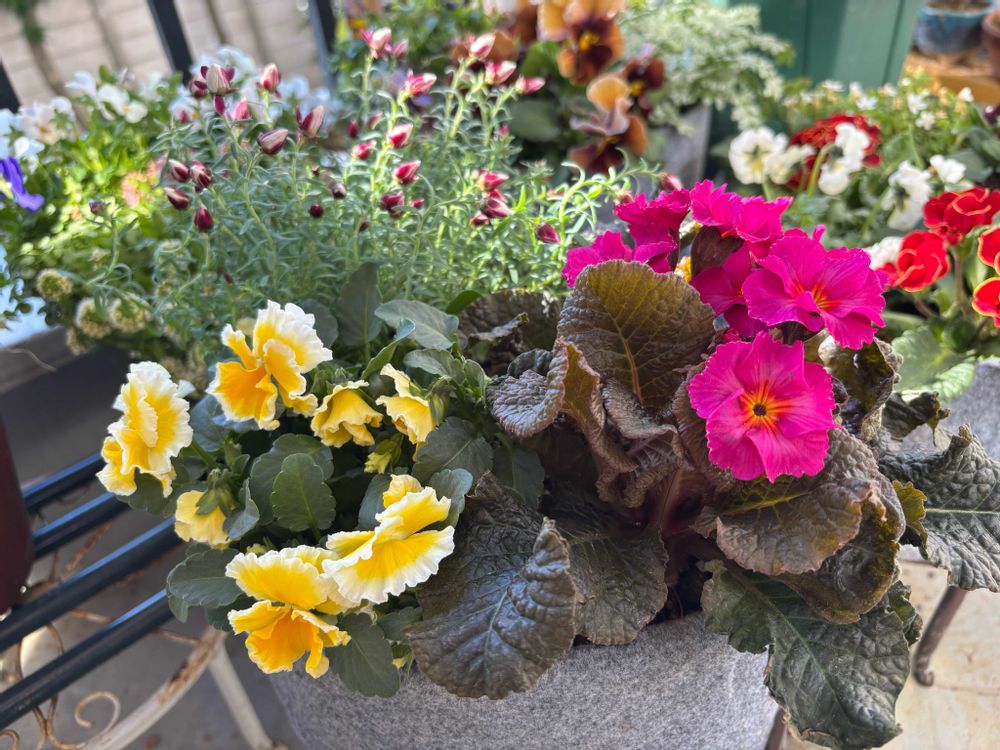 先日購入したプリムラジェシカを寄せ植えに。カゴに植えていたが調子の悪いエッグタルトを移植。その他、ちょっと気になっていたものを入れ替えるなど、今日は園芸日和だった。