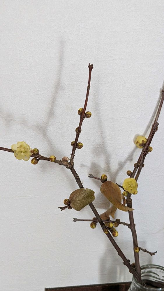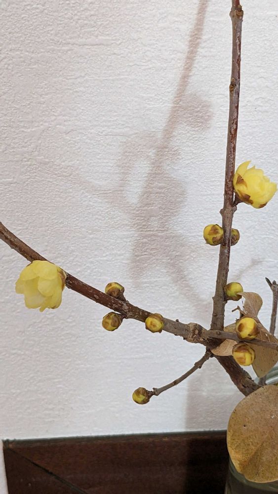 🧒👶🧑達と散歩中、プクっと膨らんだ【ロウバイ】の枝を取ってきて瓶に差しておきました。