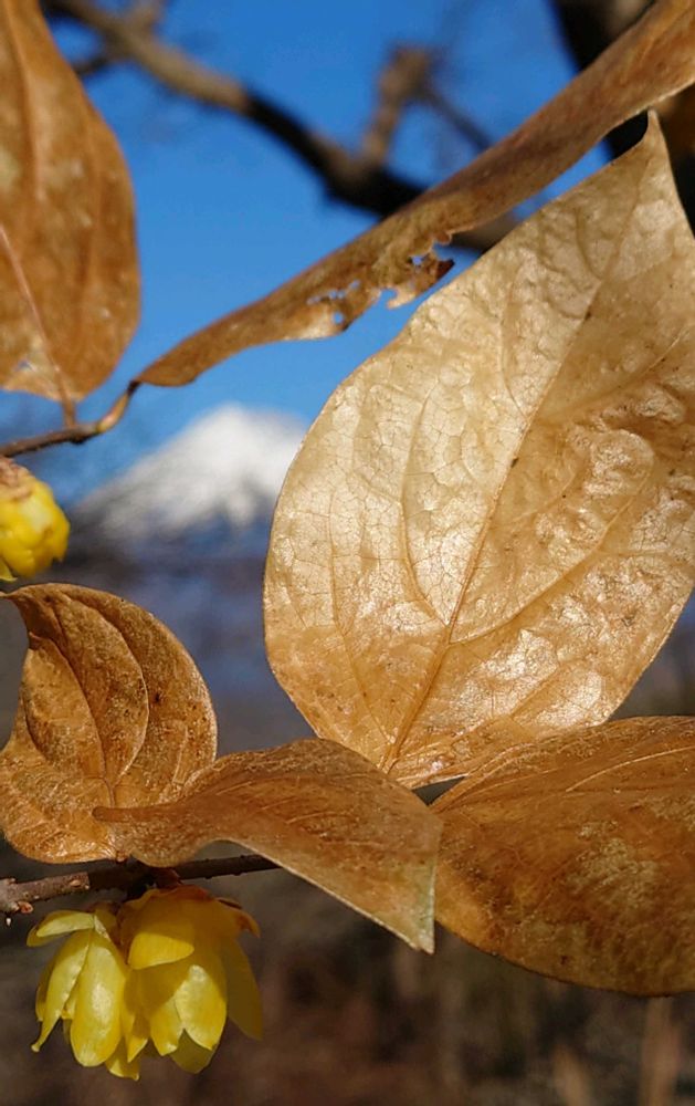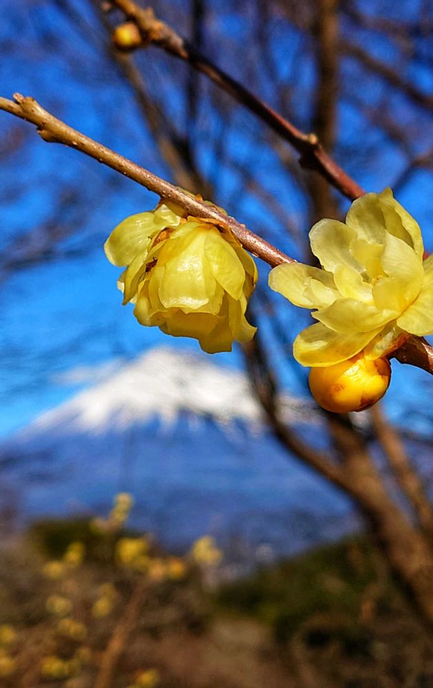 富士山🗻を背にロウバイの花