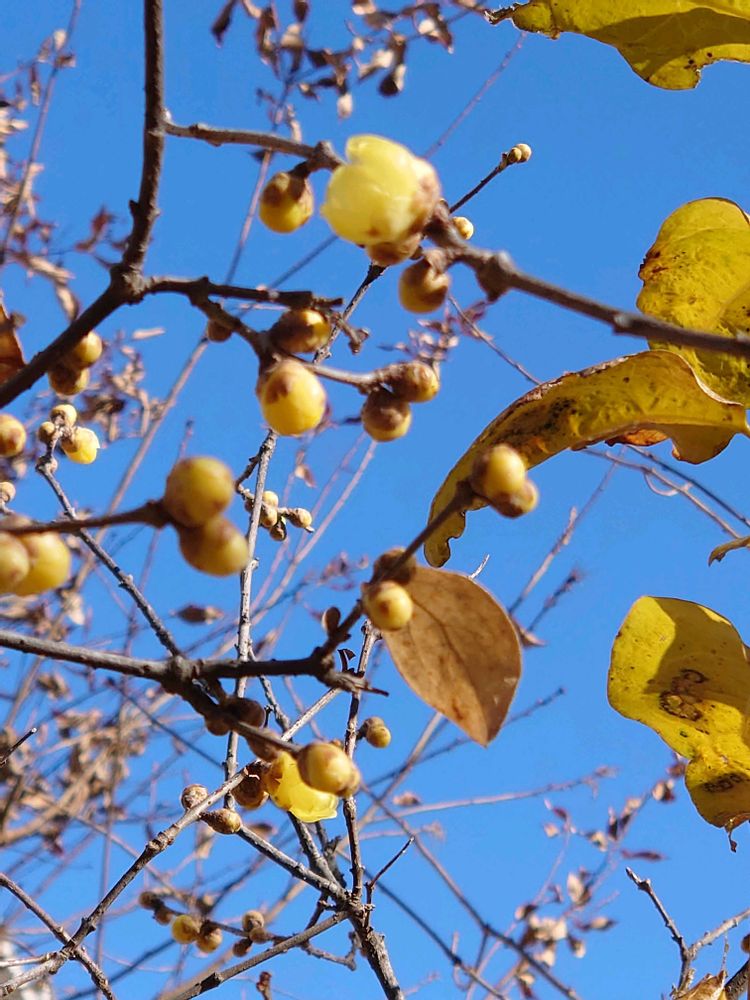 皆さんの素敵な蝋梅のpicを見て💛もう咲いているんだぁ〜💛私の近所ではまだだなぁ〜と思っていましたが、やっと今日咲いているのに会えました😊💛