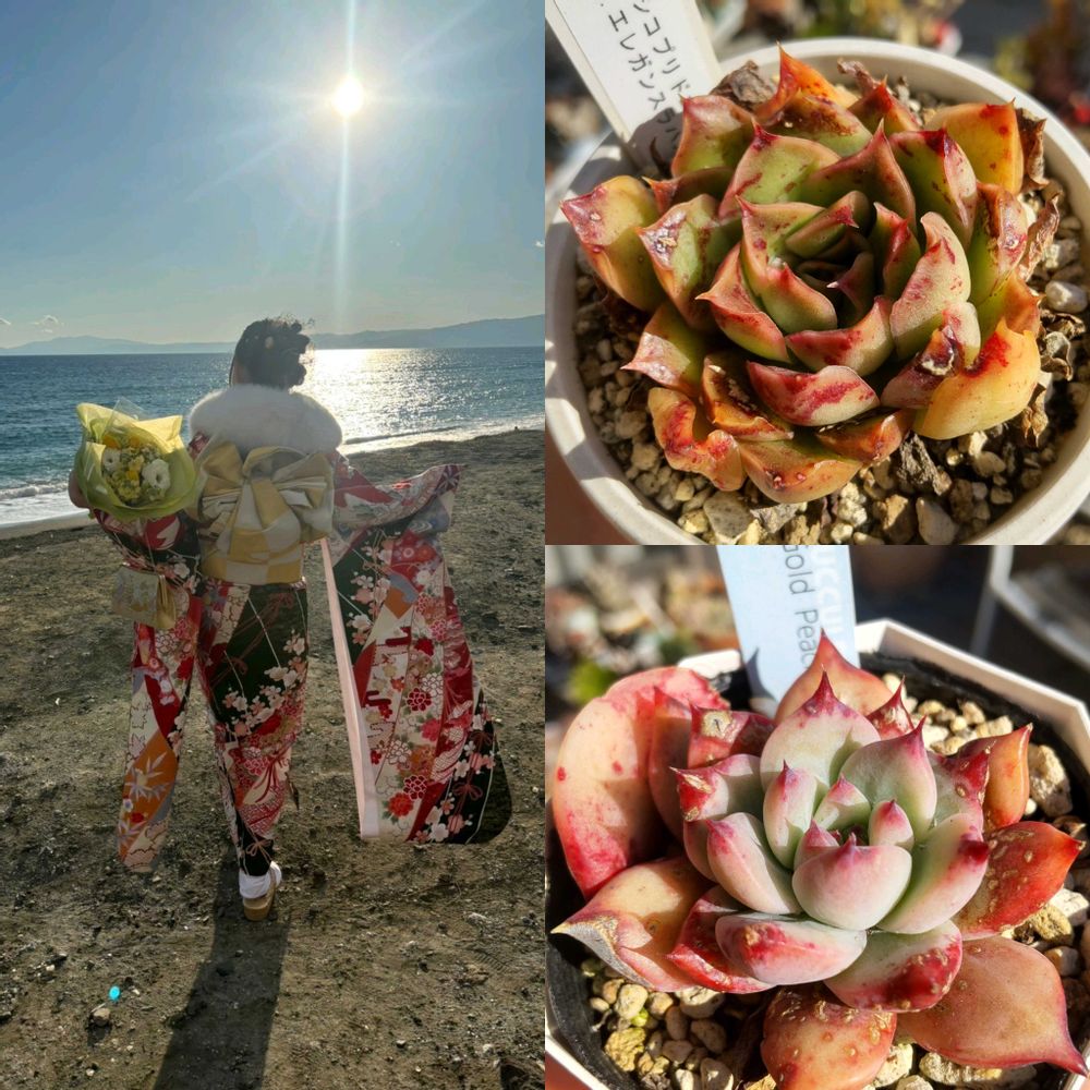 式典後、着物のまま友達と海へ行って記念撮影してきたとくれた写真📸