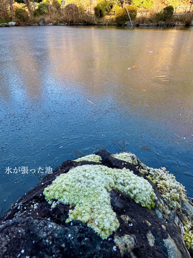 池端の大きな石🪨・霜色の苔🌱が綺麗でした…