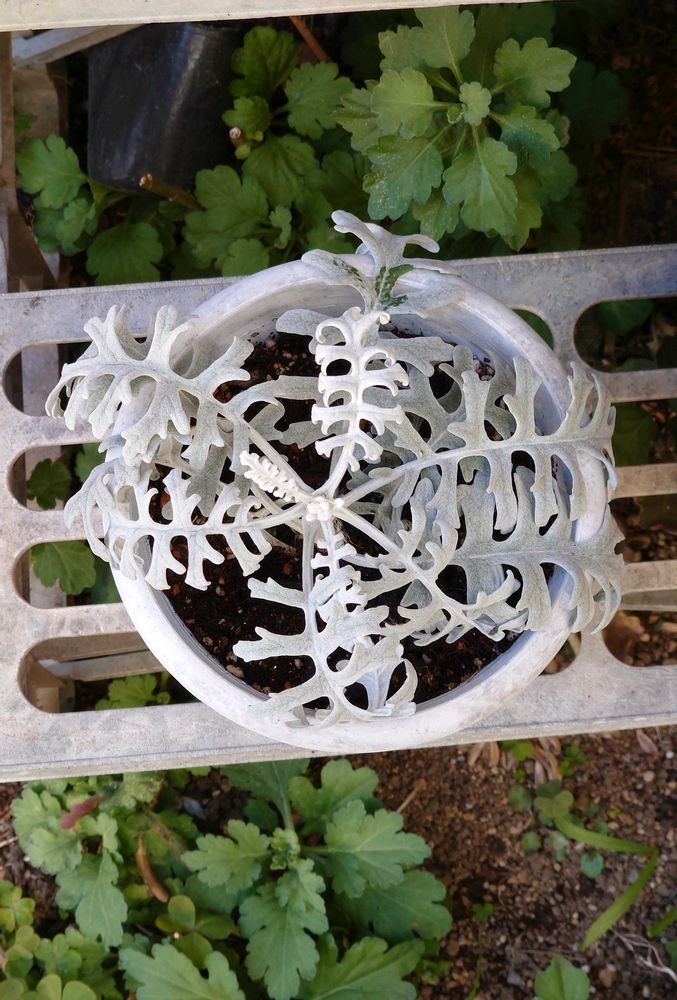 母親が近所の知り合いからいただいたそうです。「シロタエギク」のようです🔍️ 雪の結晶みたいです❄😀