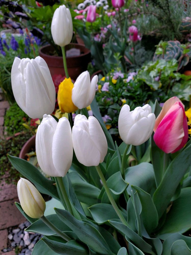 白いチューリップ🤍さんを植えてみたら とても可愛くて 今回もたくさん植えてみました ♪ヽ(*´∀`)ノ 過去pic昨年4月📸