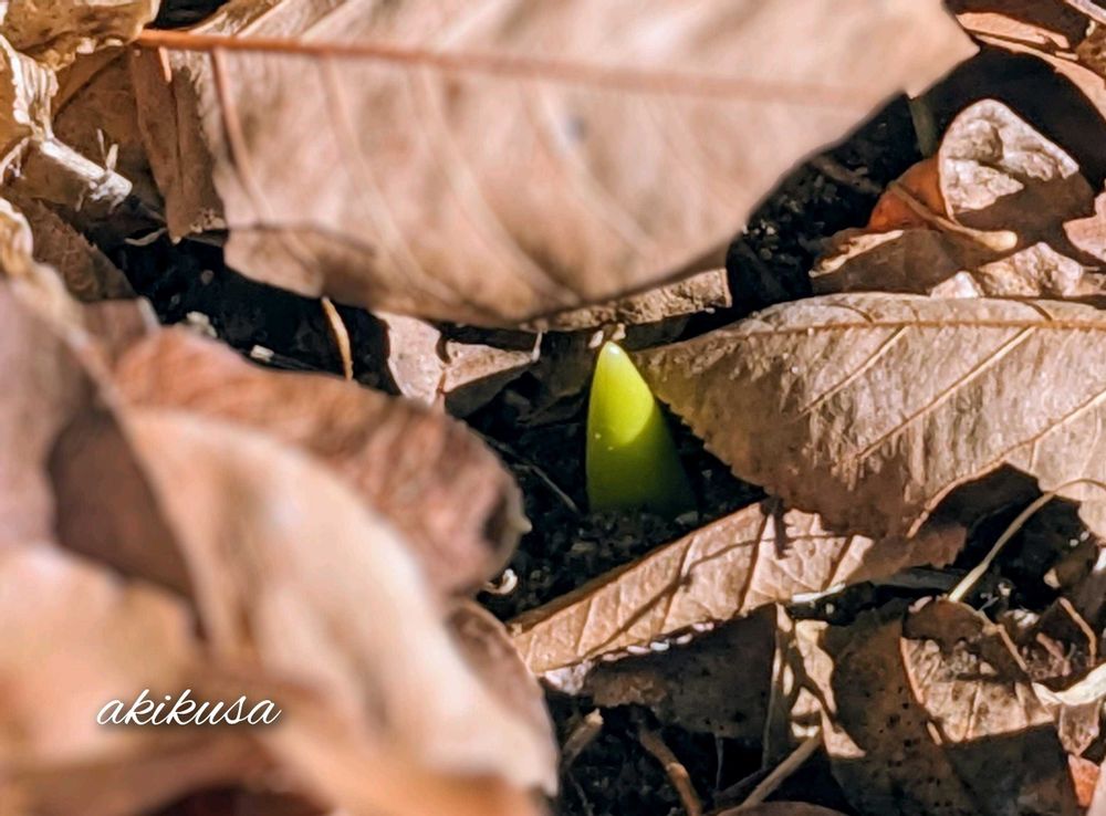 周りの枯れ葉に守られて…暖かくなってきたんですね〜🌷