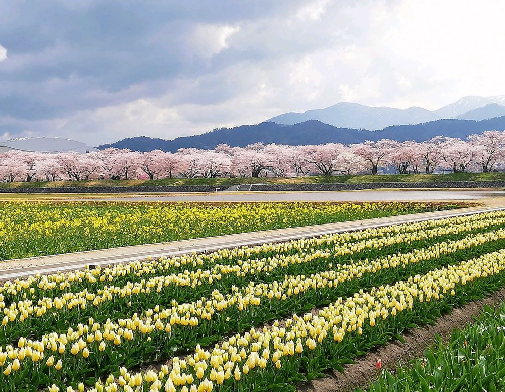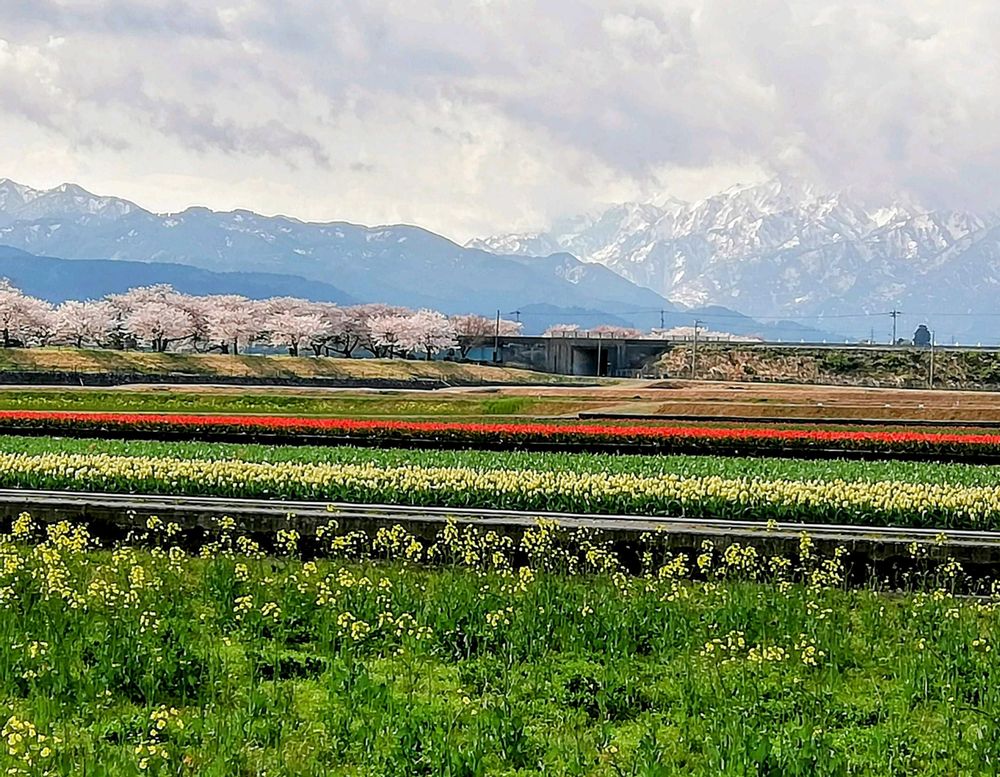 北アルプス連邦🏔️、菜の花、桜🌸🌸🌸、🌷🤍💛❤️色とりどりに(2021年4月)