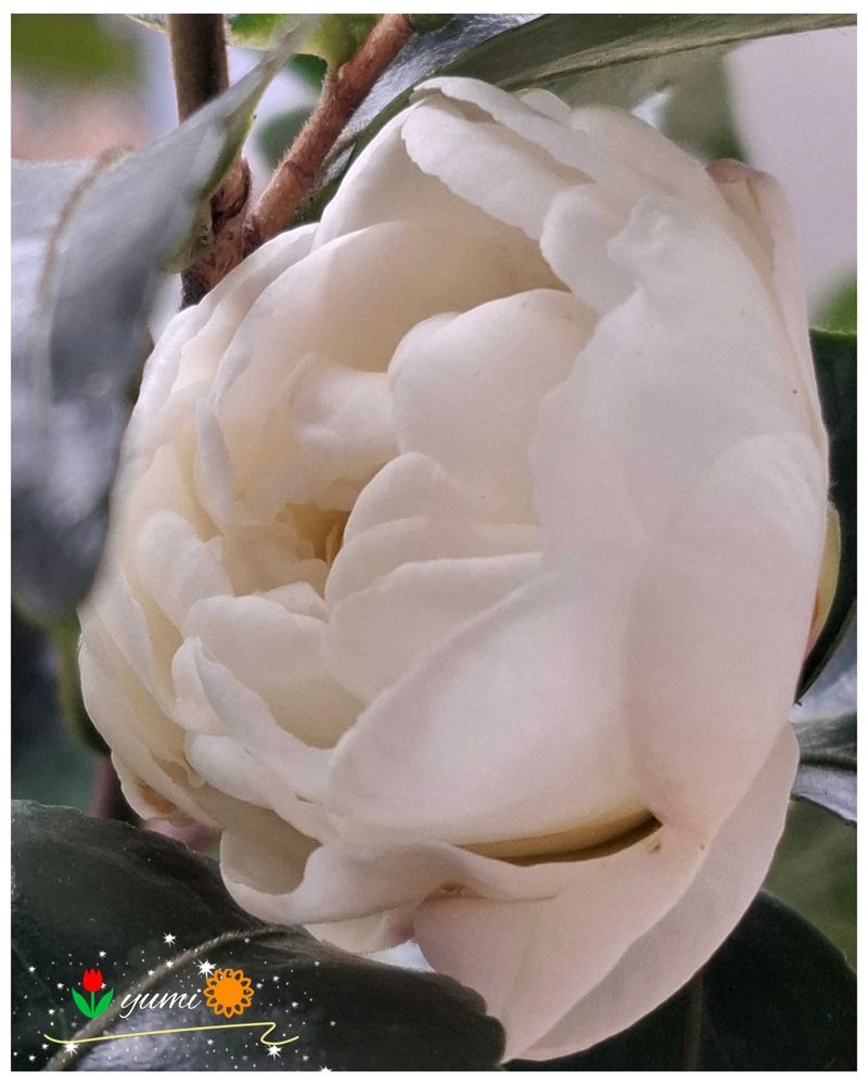 やっと白🤍サザンカ1輪開花したので、記念撮影🤳