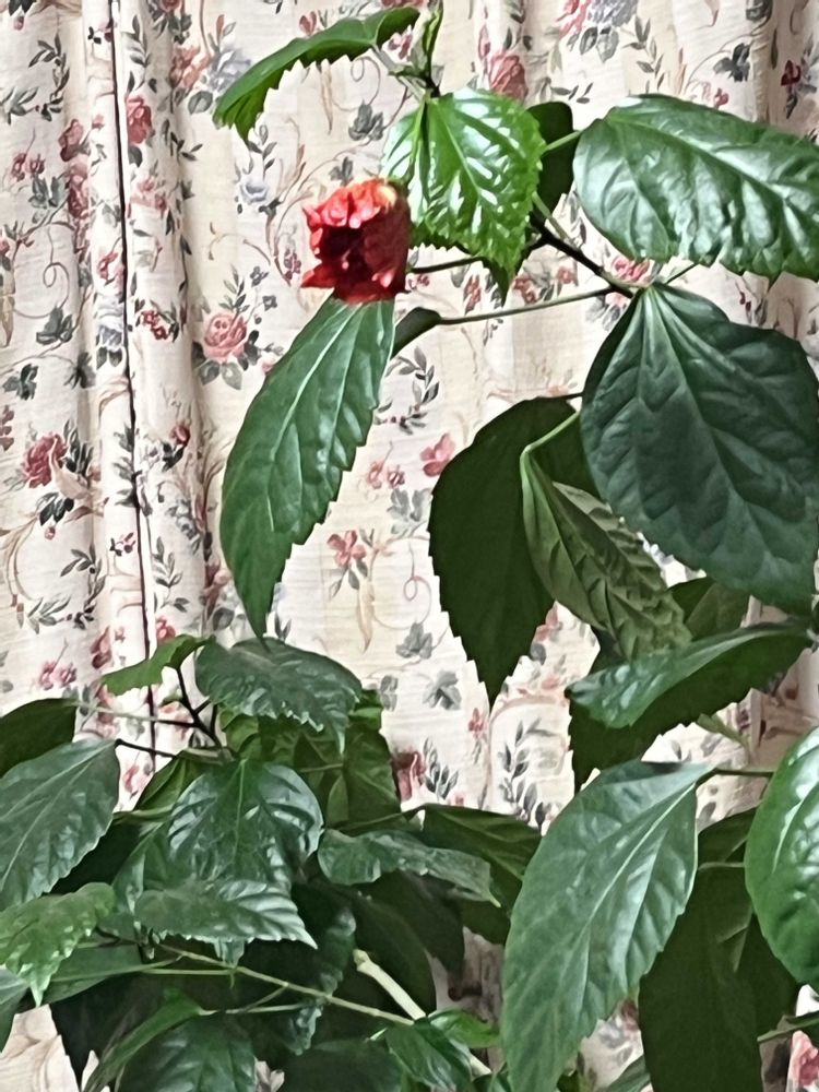 😮オ😄ハ😚ヨ😘ウございます🌺 3枚の画像upです🍀昨日、蕾だったハイビスカス🌺フラミンゴさん🦩 今朝、満開一歩手前という感じです🤭 綺麗な花姿😍