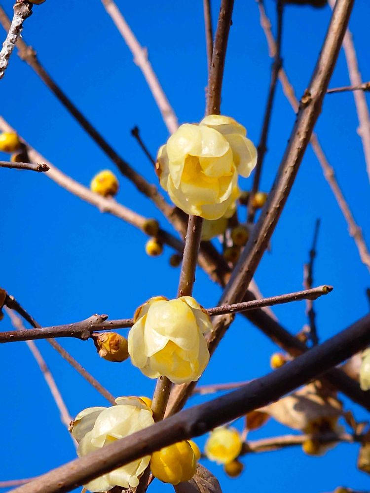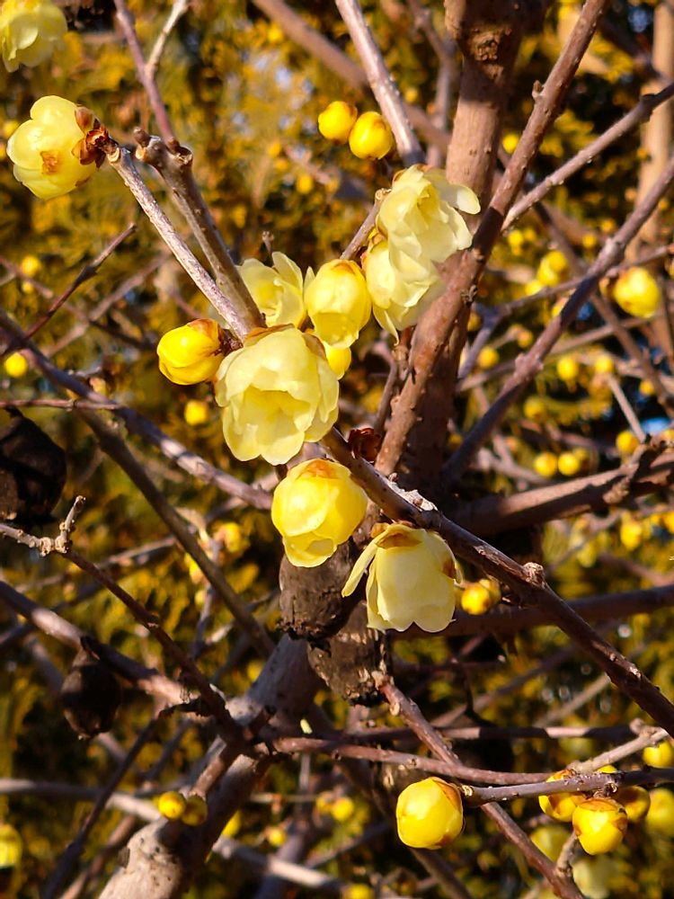 散歩日和の昨日、またまたロウバイの様子をチェックしてきました🧐 日に日に花数が増えています🙌 ツボミもいっぱいです🙌🧐 もう少しでお祭り状態になりそうです🙌🙌🙌 香りをお届けできないのが残念です😐(農業試験場内にて)