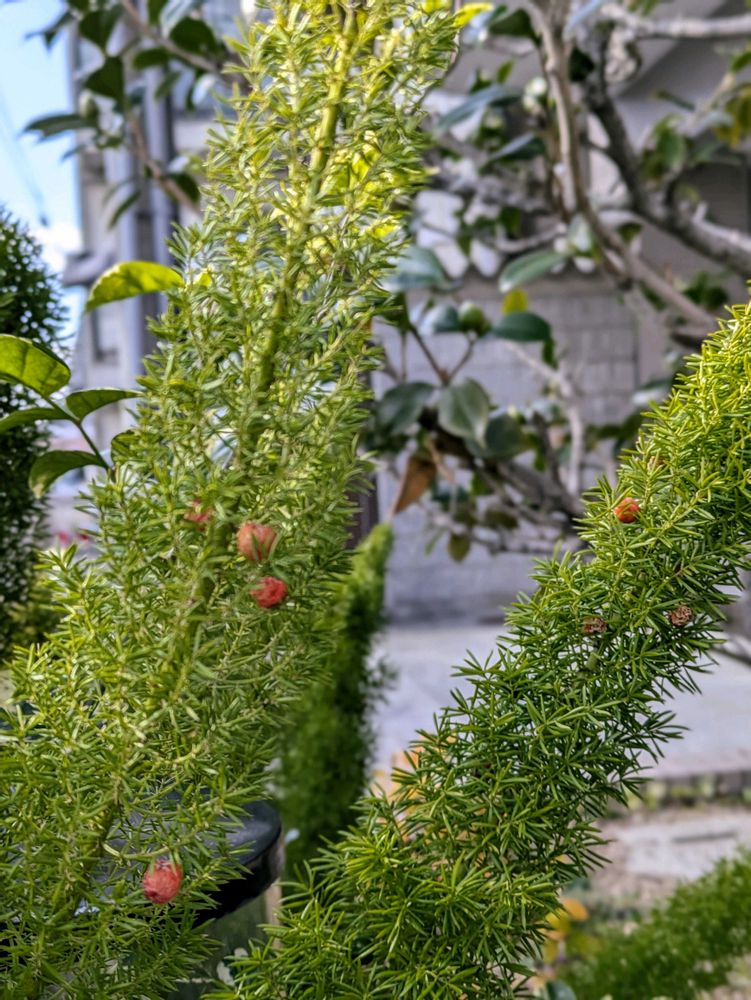 フワフワの葉っぱに赤い実がアクセント〜🩷