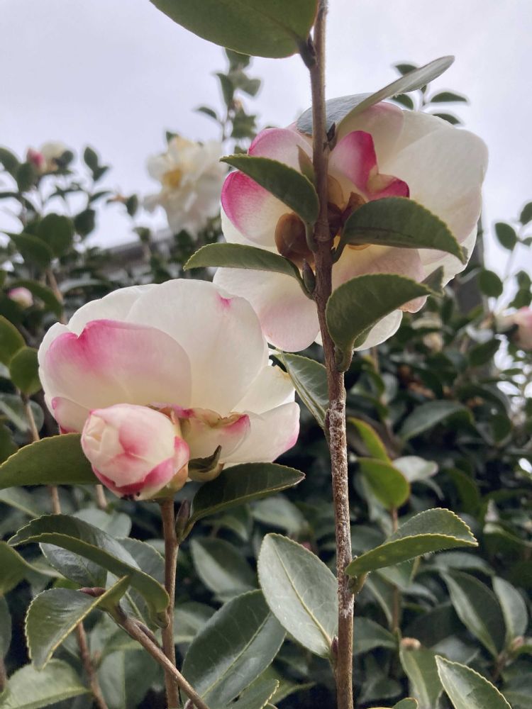 背後からの山茶花さんほんのりピンクが可愛いですね〜