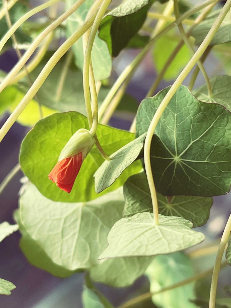 こぼれ種で出ていたナスタチュームの苗を室内で育てたら……今朝