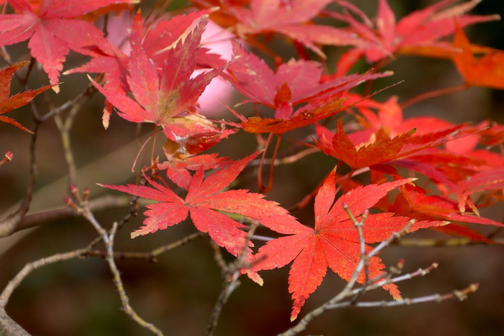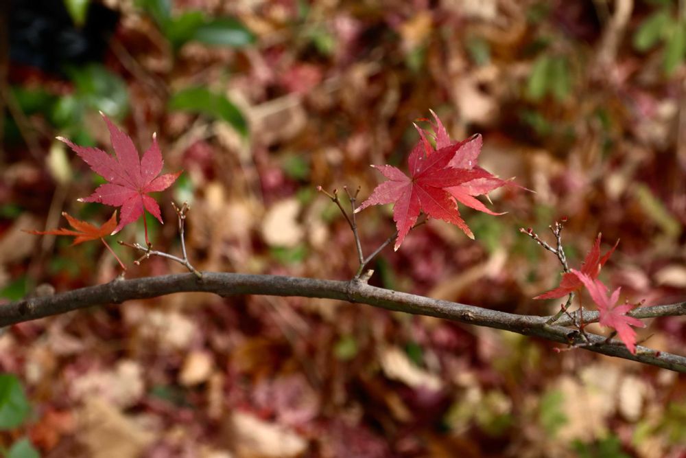 イロハモミジ晩秋の名残り🍁と白モクレンのモフモフ冬芽。