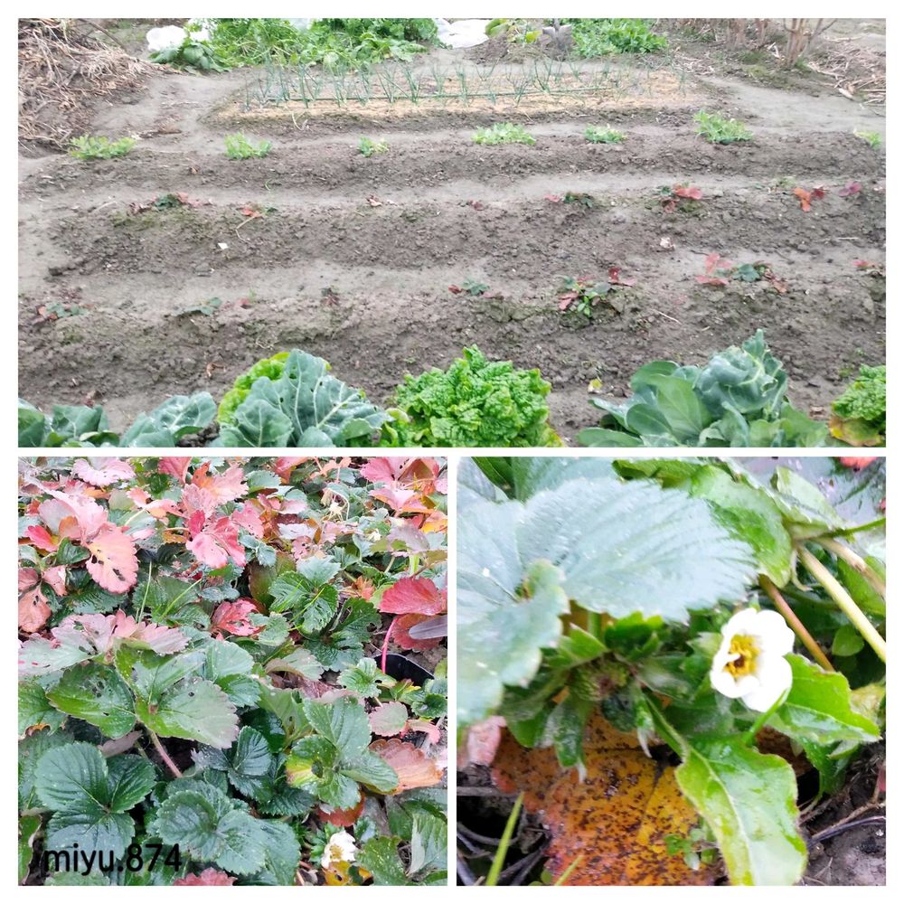 上 今朝の畑の様子をパチリ📸イチゴはどこだか分かりますか?