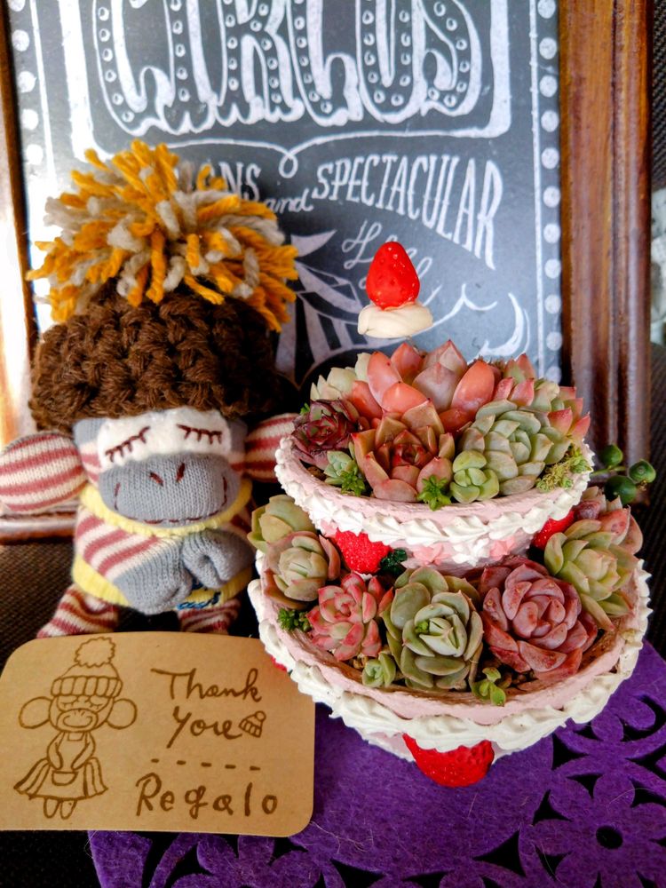 レガロチャンが届いたのでいちご2段ケーキ寄せ植えと一緒に仲良く🎵