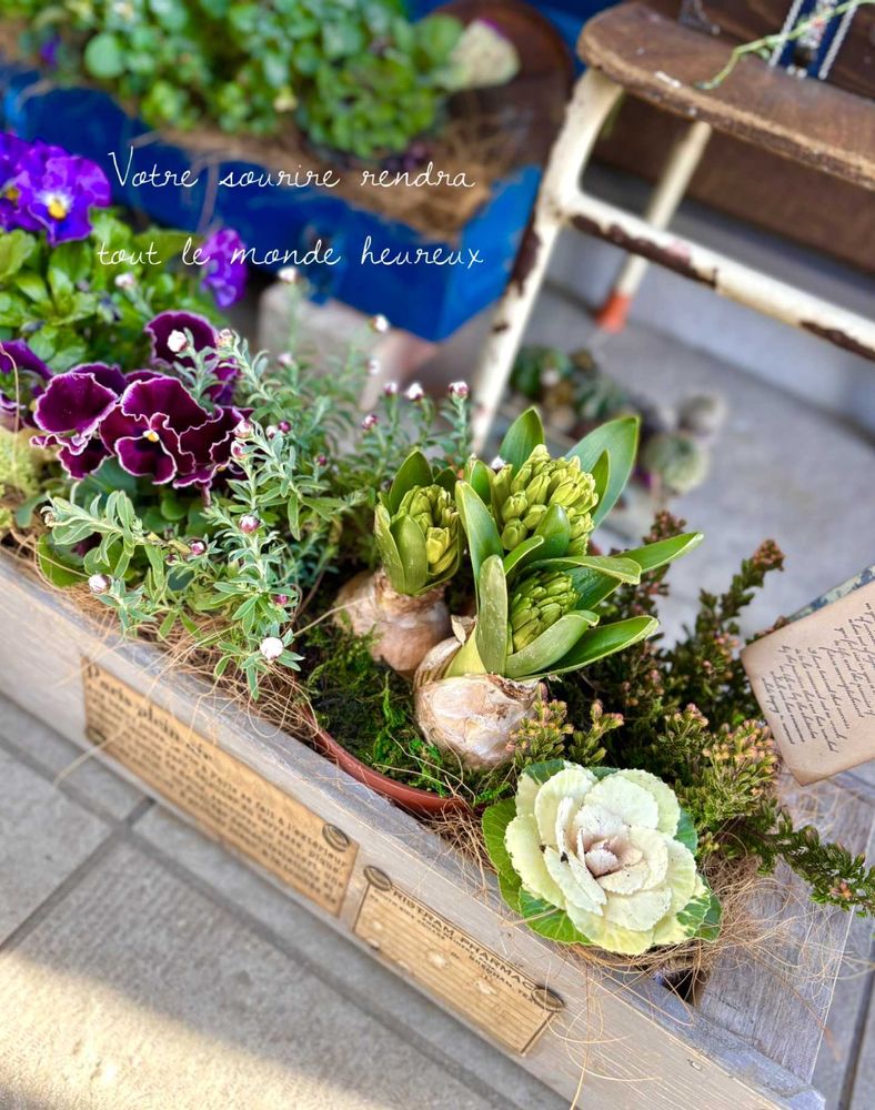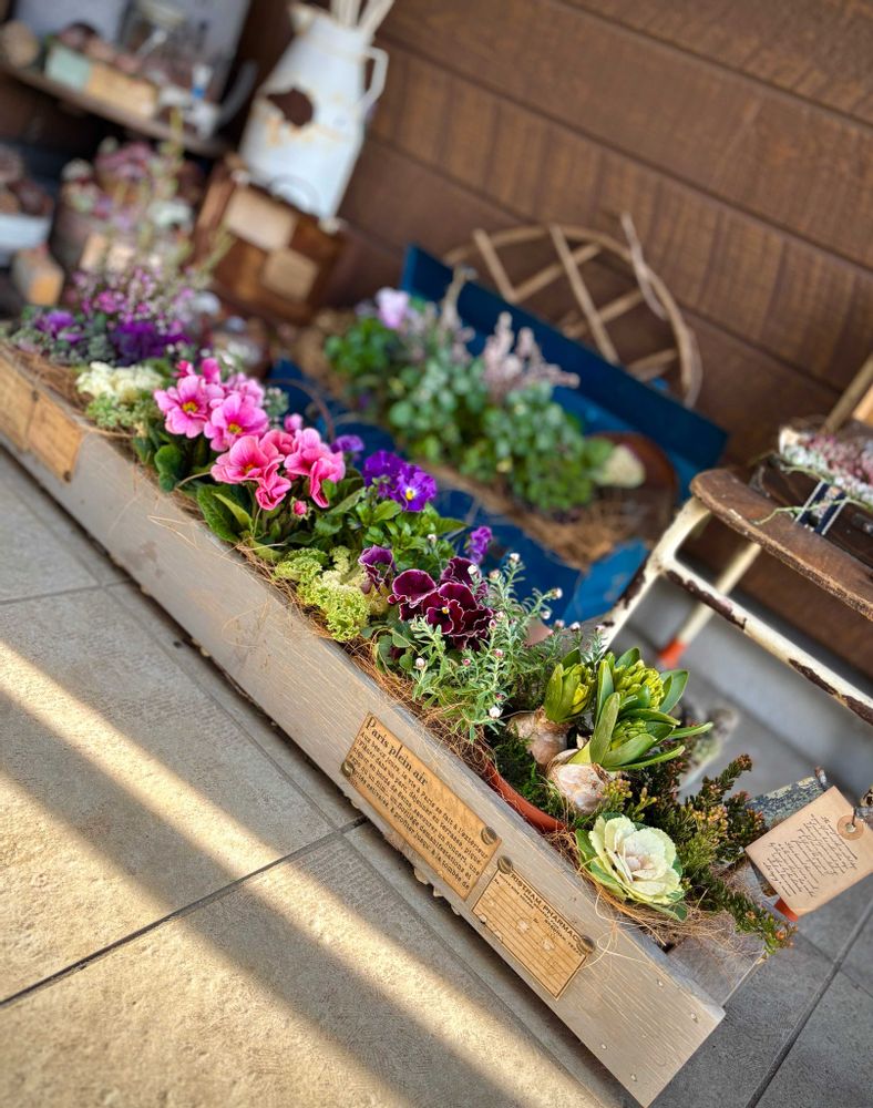 素敵な木箱に色々な植物でワクワクしますね💕︎