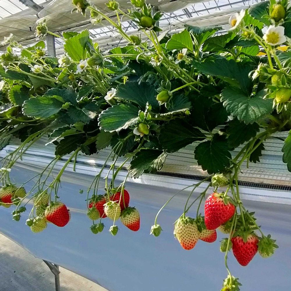 ①〜③ハウスの中には収穫時期の異なる沢山の品種のいちごが植えられています