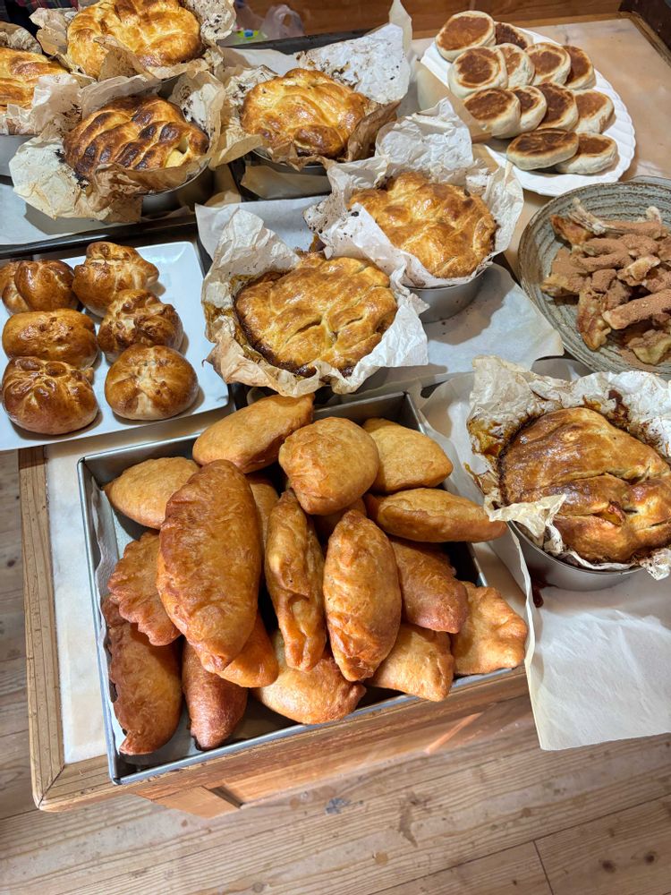 ピロシキ、お焼き、リンゴの皮の天ぷらシナモンシュガーかけ。