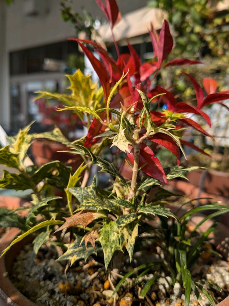🍂斑入りヒイラギとナンテン🍂