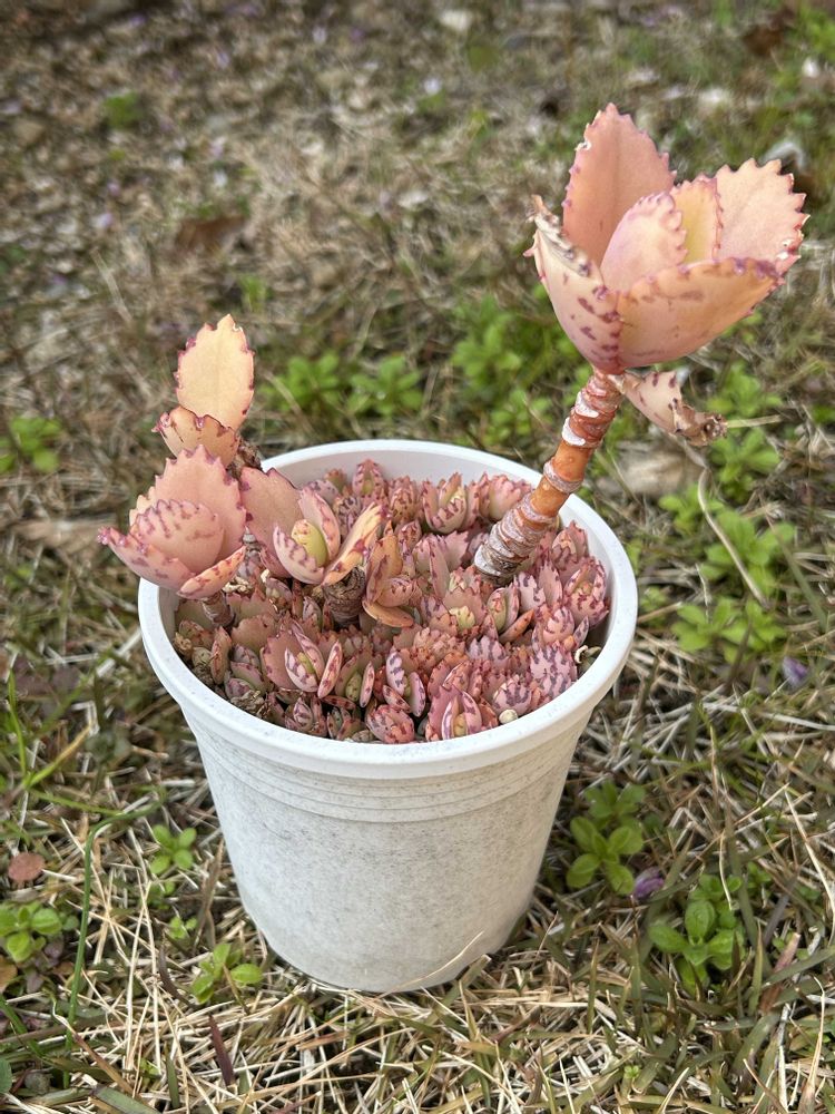 同じ頃に植えた子宝草。こんなに違う❗️1枚目と3枚目は鉢で。2枚目は地植え。こんなに差が出るとは❗️