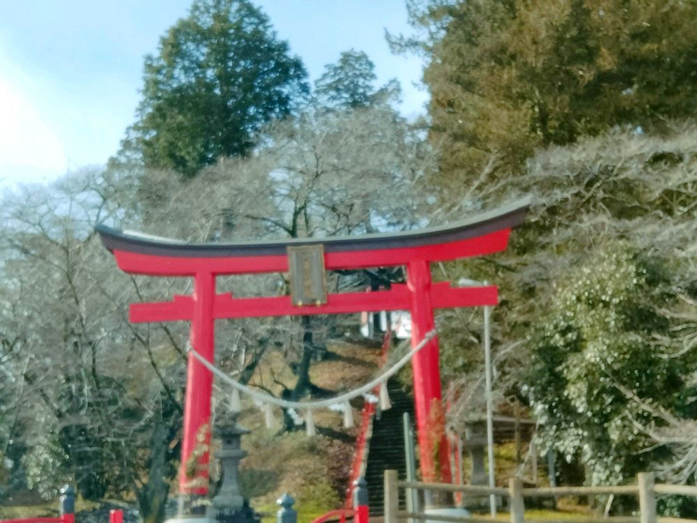 奥の⛩は南蛮鉄製だそうです。1輪、薄紅の玉椿が綻んでました。