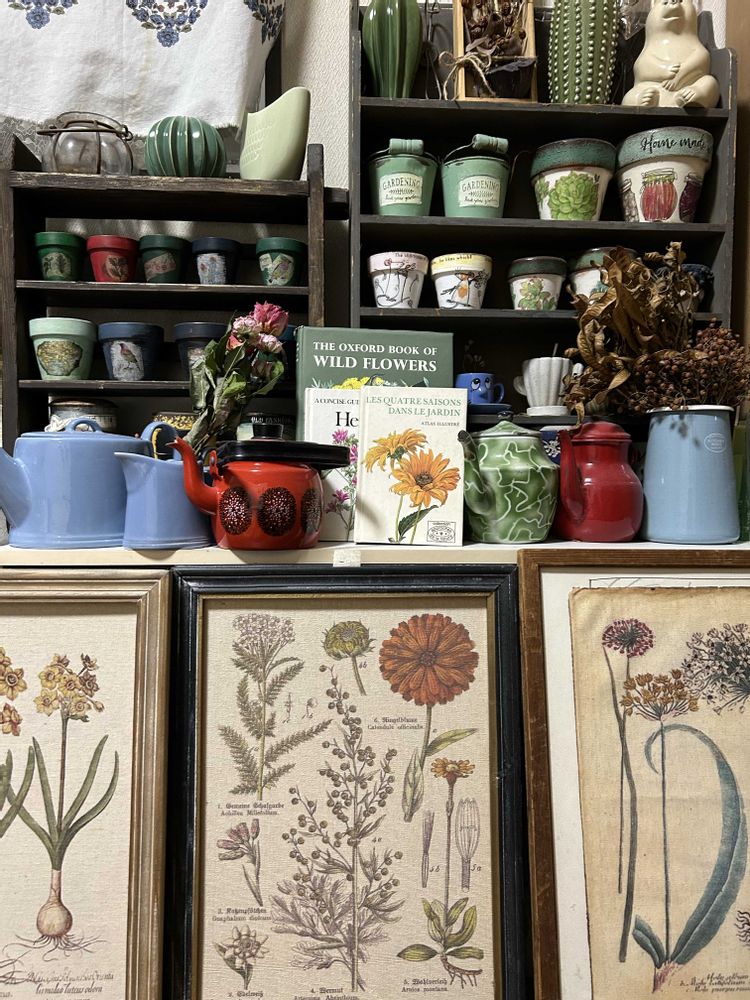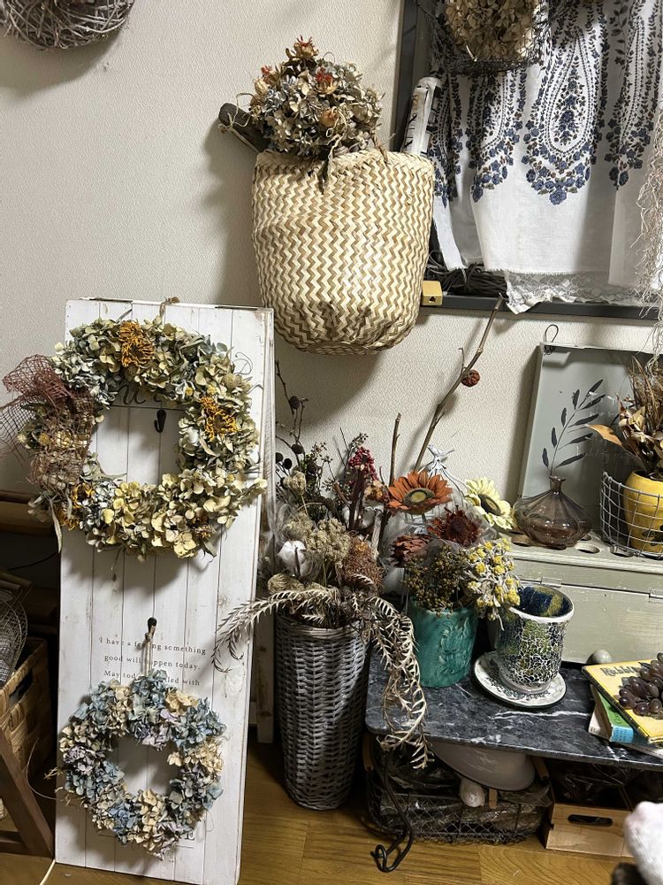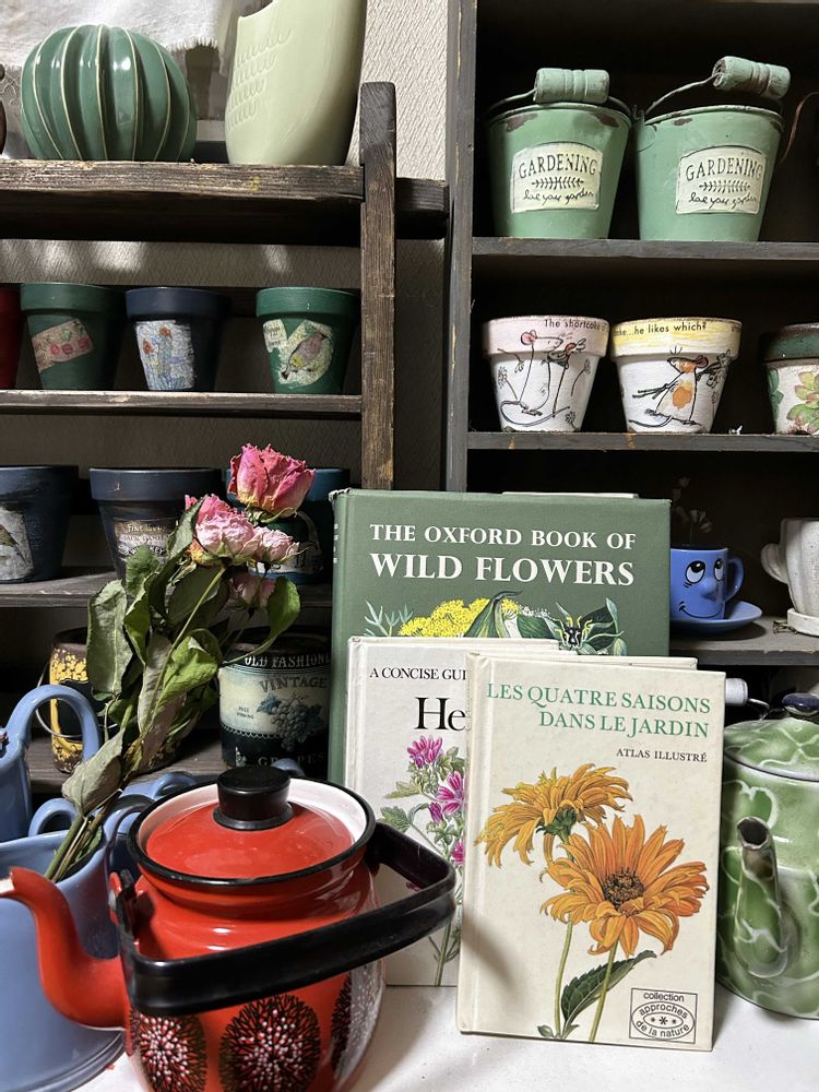 今日はお花がないので私の部屋のドライフラワーと色々集めた本やリメ鉢やら陶器やらポットなど