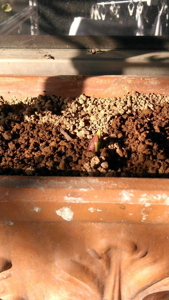 ・12月に利用に行った『なばなの里・花市場』で買った チューリップの球根から芽が出ました。春がすぐそこ!😉