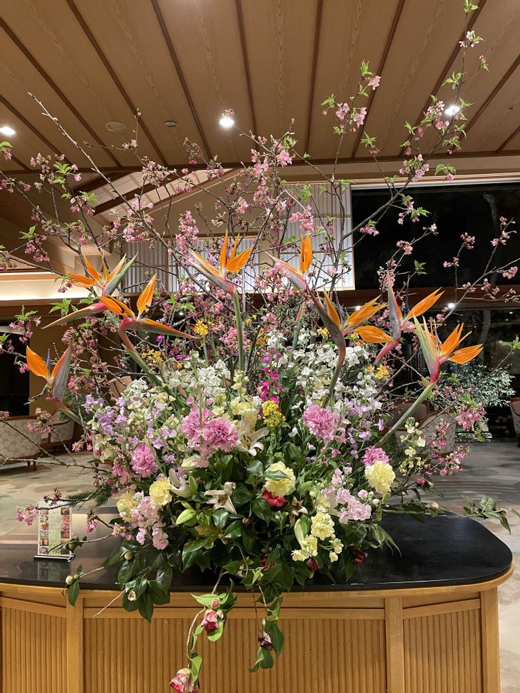 鴨川館は高級旅館だから、館内のお花全てがゴージャスだったよ〜