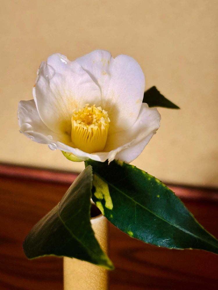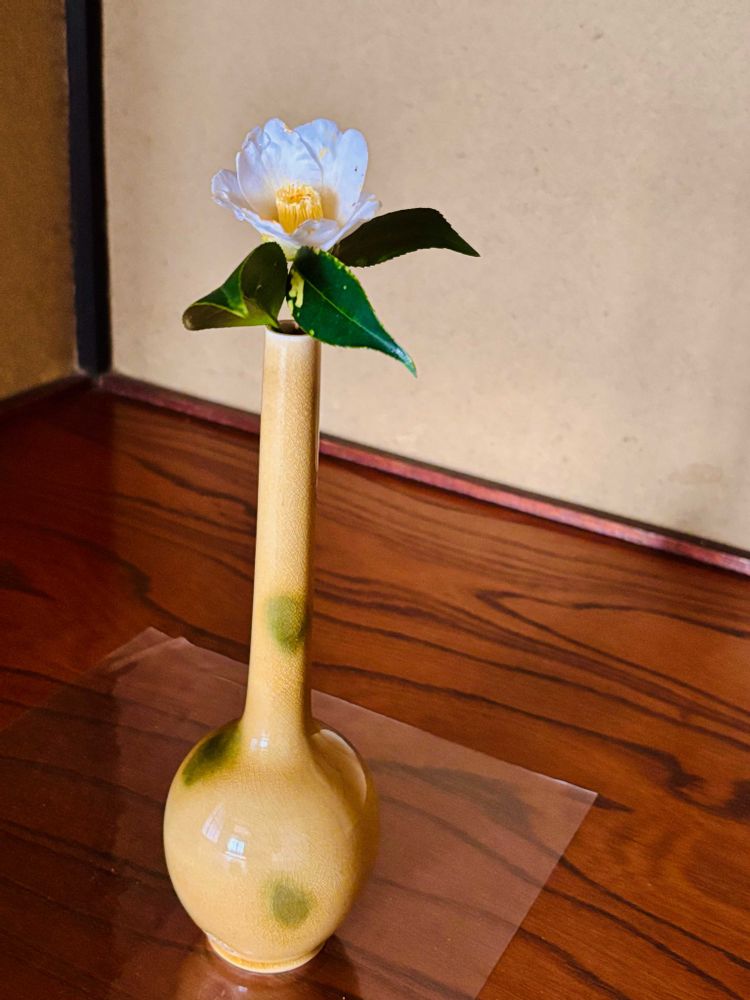 そこに侘助の一輪挿しがあるだけで、落ち着いた癒しの世界が広がっている