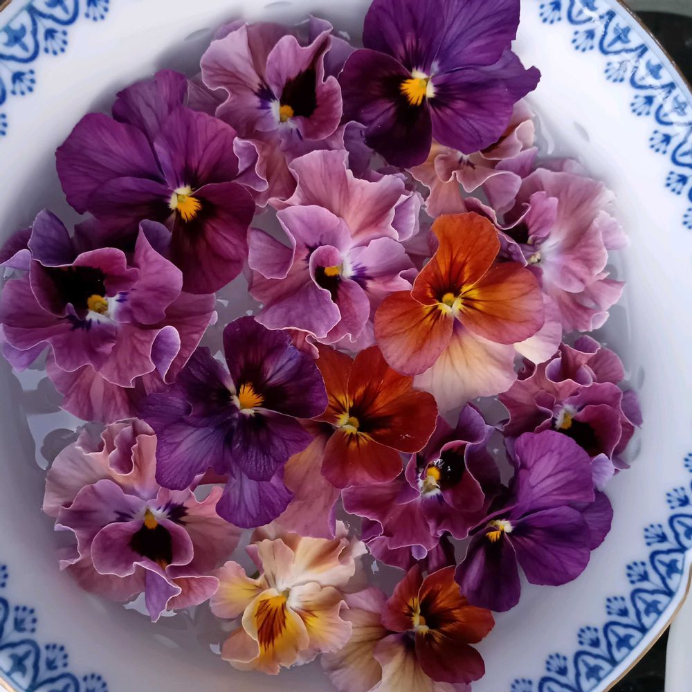 1️⃣寒いので咲いてるビオラで花手水を作って遊んでました❄️