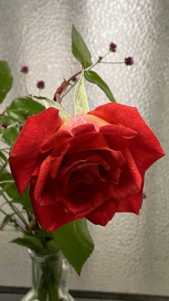 美しい一輪の薔薇🌹深い紅。か
