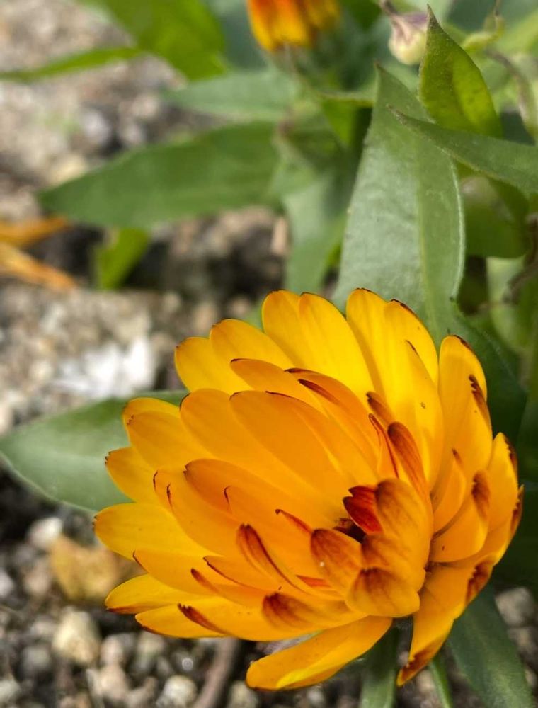目が覚めるような鮮やかなオレンジと黄色のキンセンカですねぇ👏