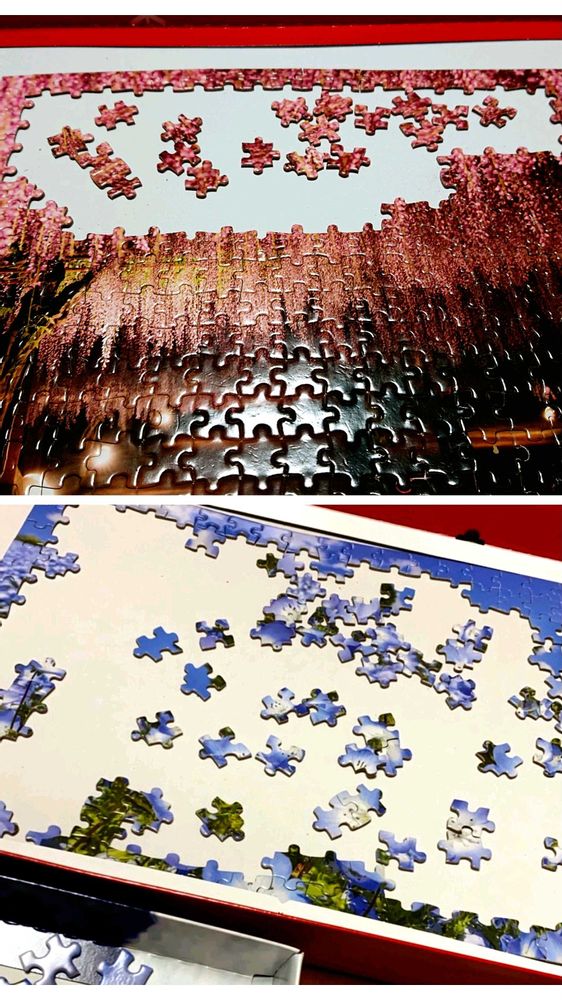 パズルは、私はどこかの夜の桜で、娘のはネモフィラ畑です😉🎶