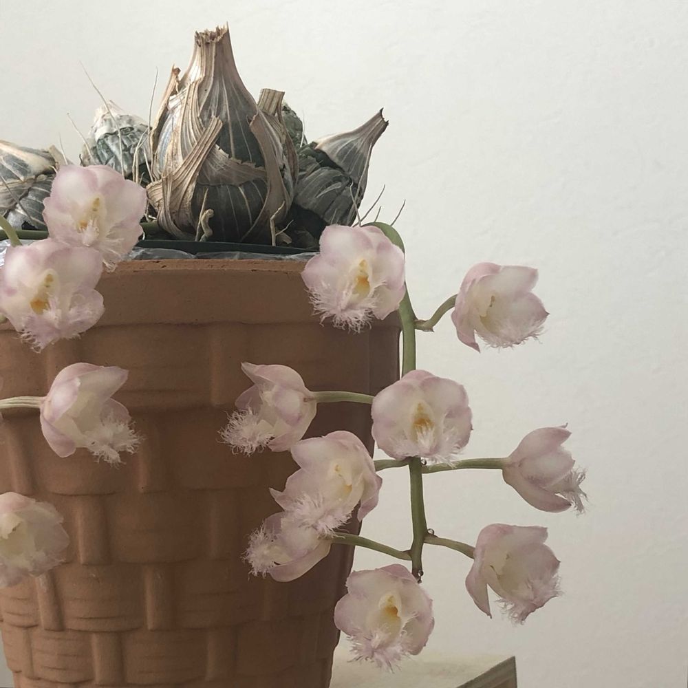 好きな植物は蘭とバラ。野に咲く花、山の花、街路樹も。 自然をモチーフにした現代アートも。