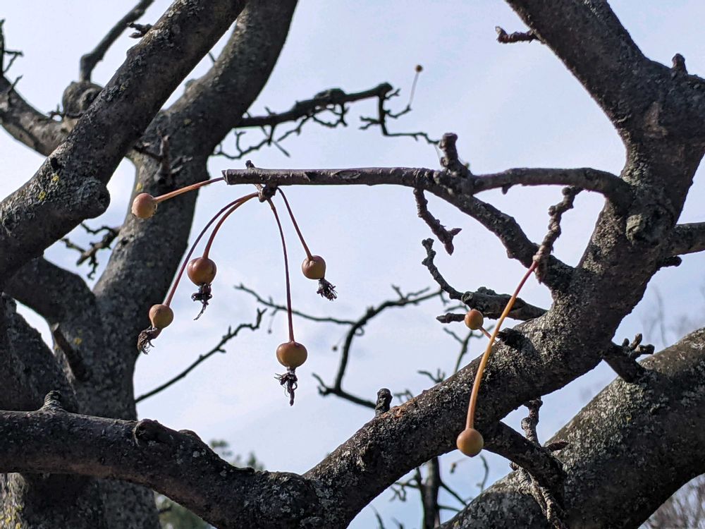 ホトケノザと、何かわからない木の実と、冬の藤棚です。