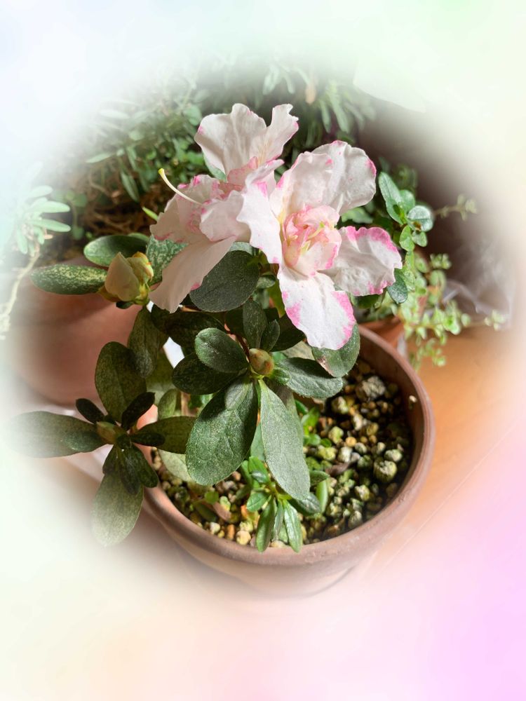 ①ご近所の寄植えが春っぽくなった ②我が家のアザレアは寒くて室内 ③いつも脇役のアリッサムがお花の本で特集されてた ④JAの鮮やか色のアリッサム