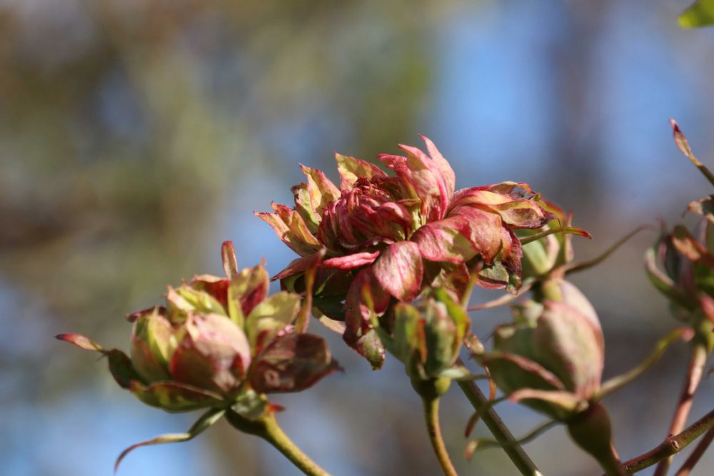 花に見える花弁は苞葉が変化さしたものと思われ「青花」「グリーンローズ」と呼ばれています。雌雄の蕊(しベ)も退化、種子はできません。花と呼ばれている苞葉は、時間が経つと赤褐色に変化します。