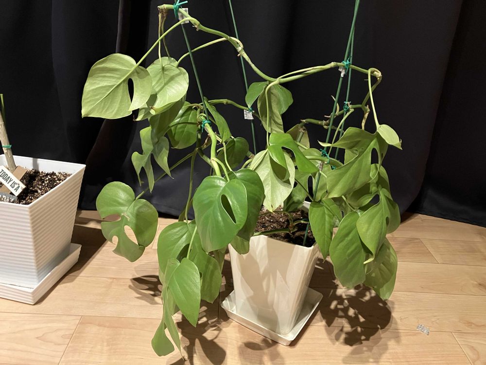この前塀に付けてるラックから風のせいで墜落しました…姫モンステラ🌱