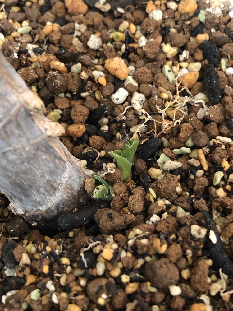 先日水やりしたときに、根本から小さな芽が出てきているのに気がつきました(2枚目のpic)。