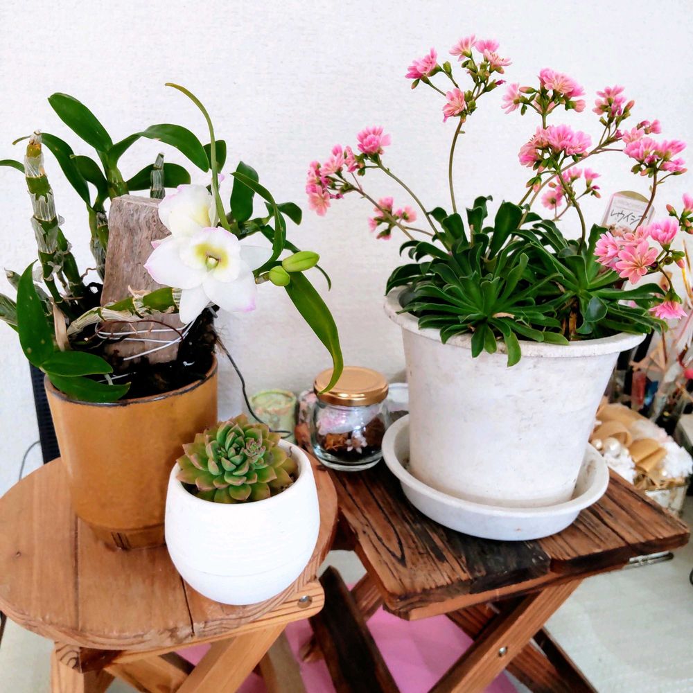 デンドロビュームが、すっかり開花した。あと2輪咲いてね。新しく今年の春や夏に出来た茎に蕾が、つきました。古い物には、難しいのですね。