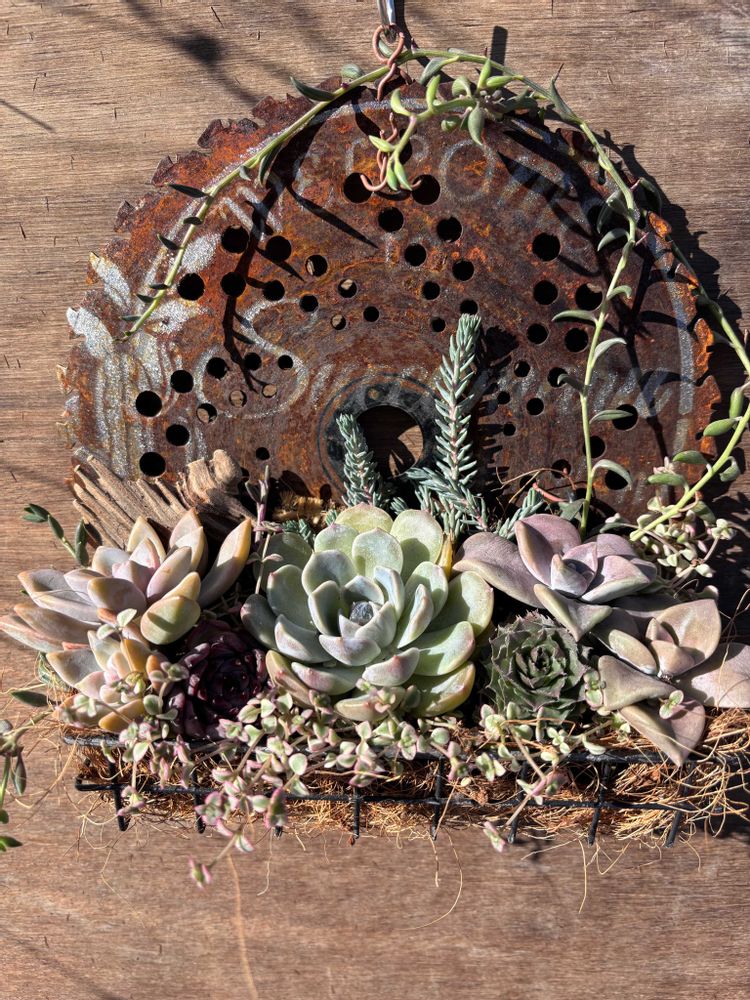 刃にステンシルして、乾かしてる間に寄せ植え作成。ワークショップで、どうかな😊