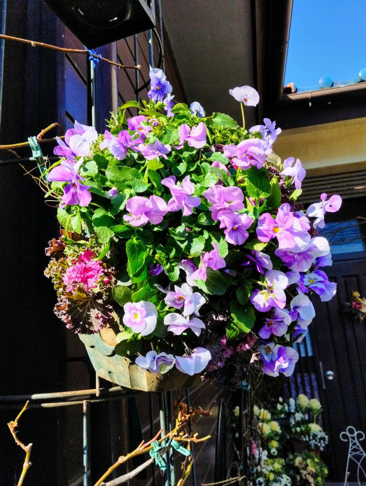 葉牡丹とよく咲くスミレのハンキング💜