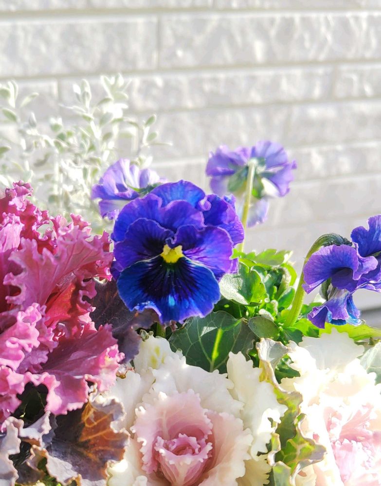 優しい葉牡丹の色にビオラの鮮やかさが映えますね✨