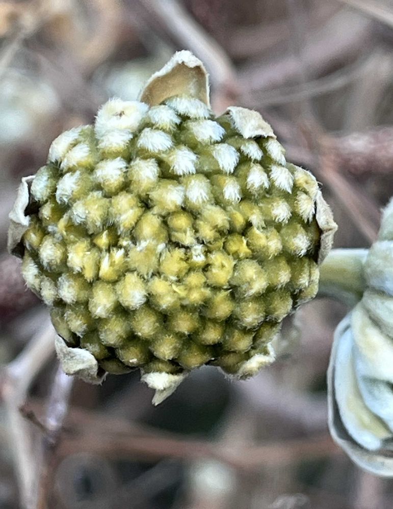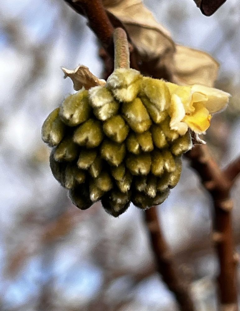 ミツマタの蕾が綻び始めて可愛いですね🥰