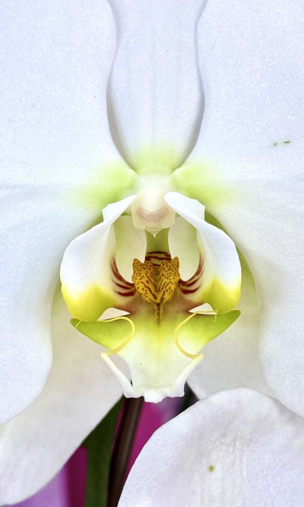 チーターさんのお顔 △の先端の蕊なのかな? 白地に黄緑色のグラデーションかあってやっぱり高貴さが感じられますね💕