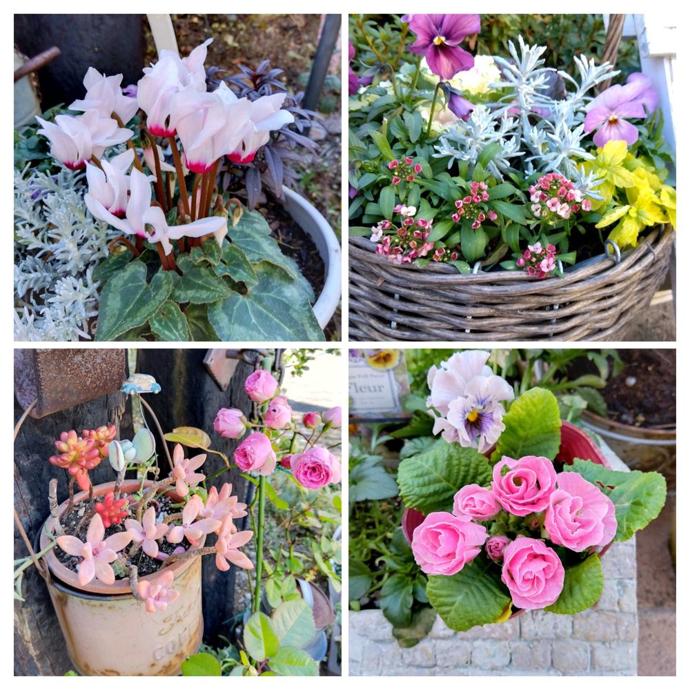 沢山の鉢にかわいい寄せ植えがいっぱい🈵だね♪